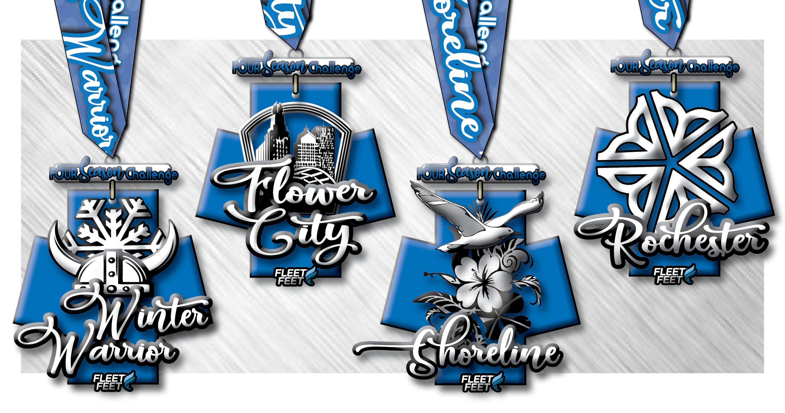 - Special Four Season Challenge designation on your bib for Flower City, Shoreline & Rochester Events, so we can give you your medal post race at the race site